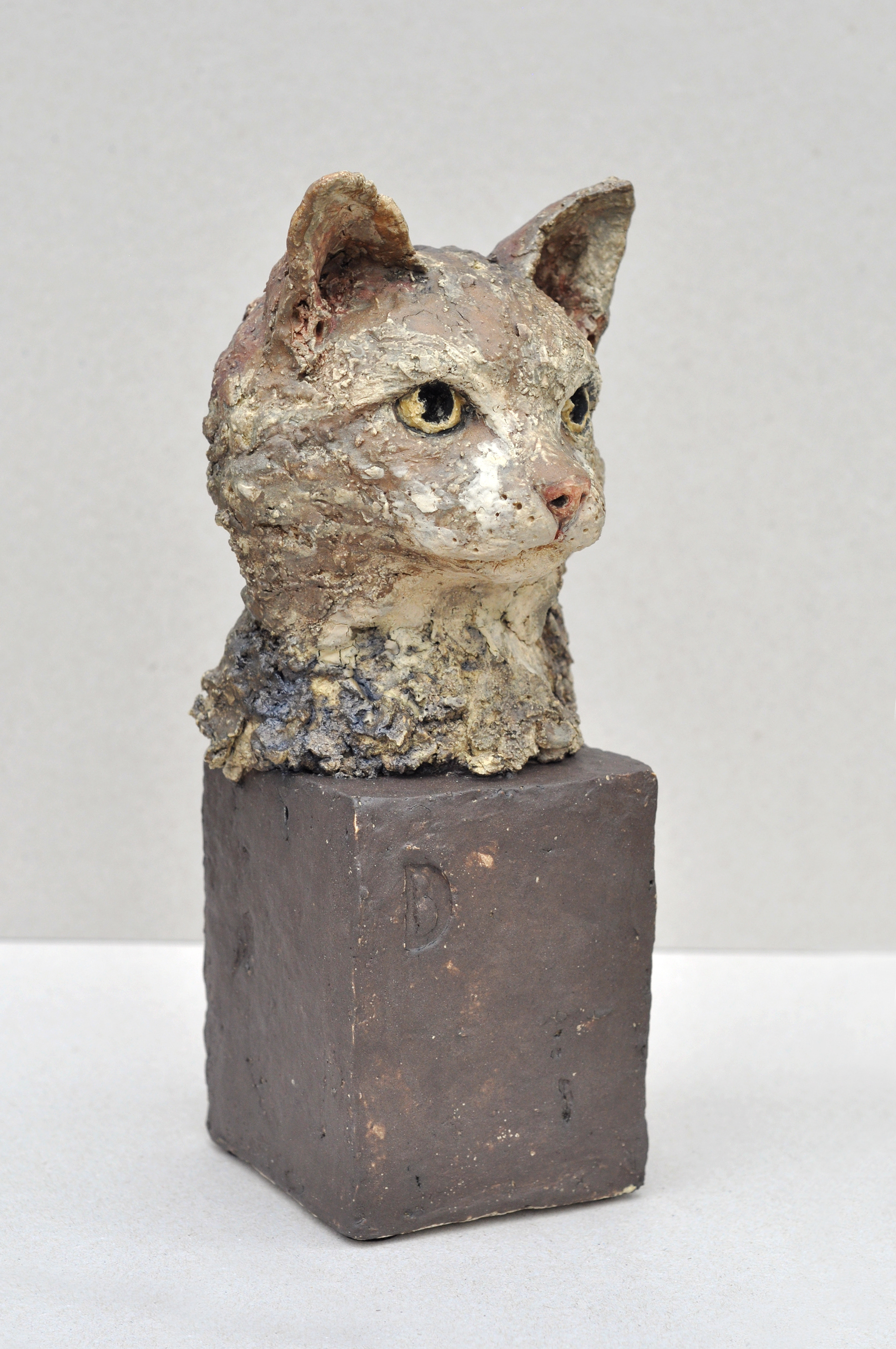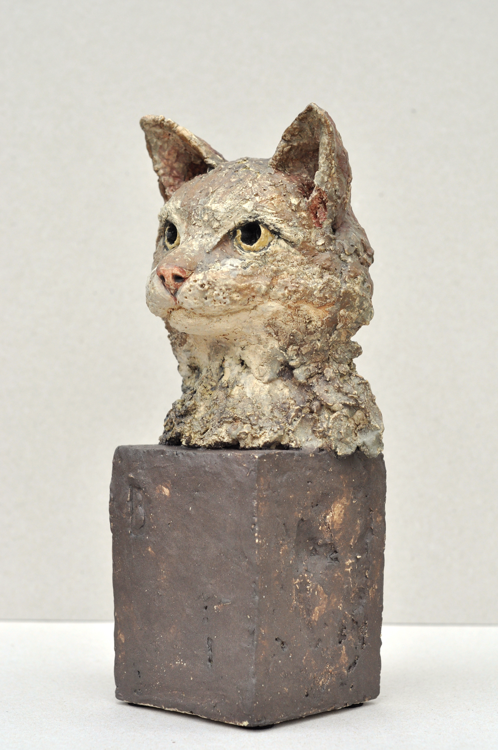 Tigerkatze – Porträt – Keramik, engobiert 12 cm x 12 cm x 30 cm